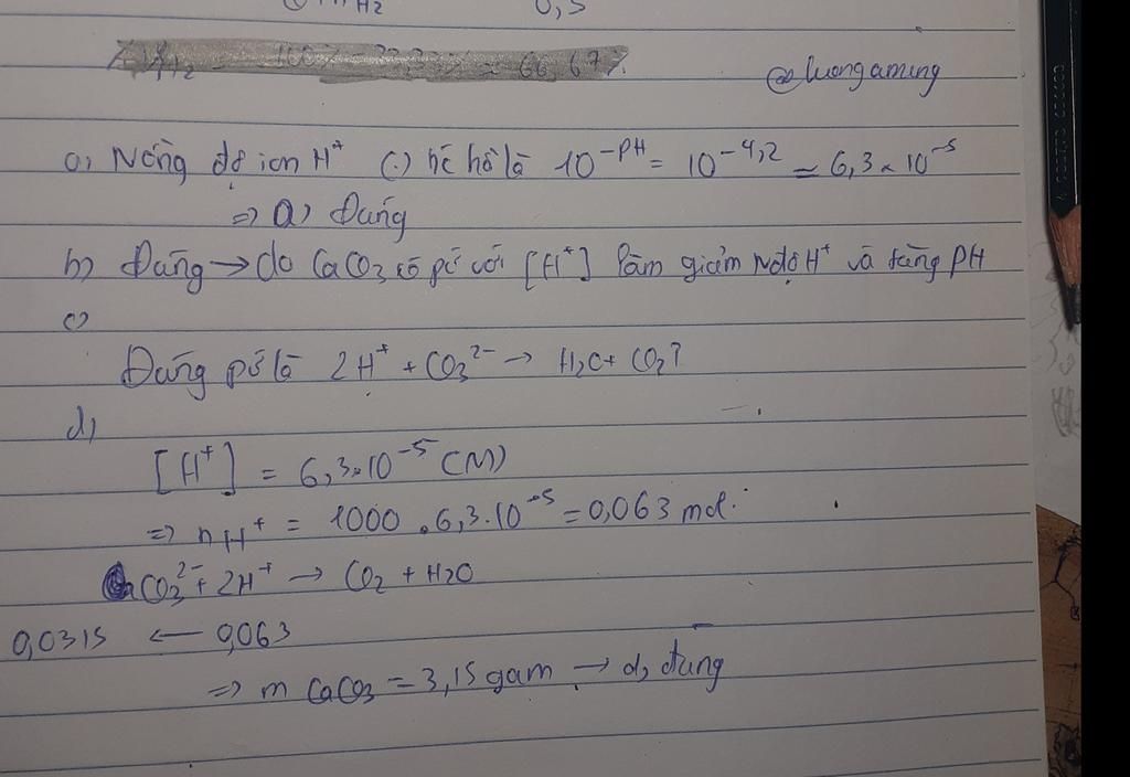 $\Rightarrow n_{H^+\text{pứ}}=1000.(6,31.10^{-5}-3,16.10^{-7})=0,062784$ mol