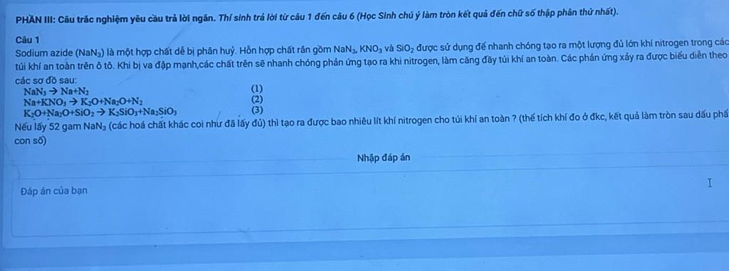 $\rm n_{N_2}=\dfrac{3}{2}n_{NaN_3}+ \dfrac{1}{10} n_{NaN_3}=1,28(mol)$