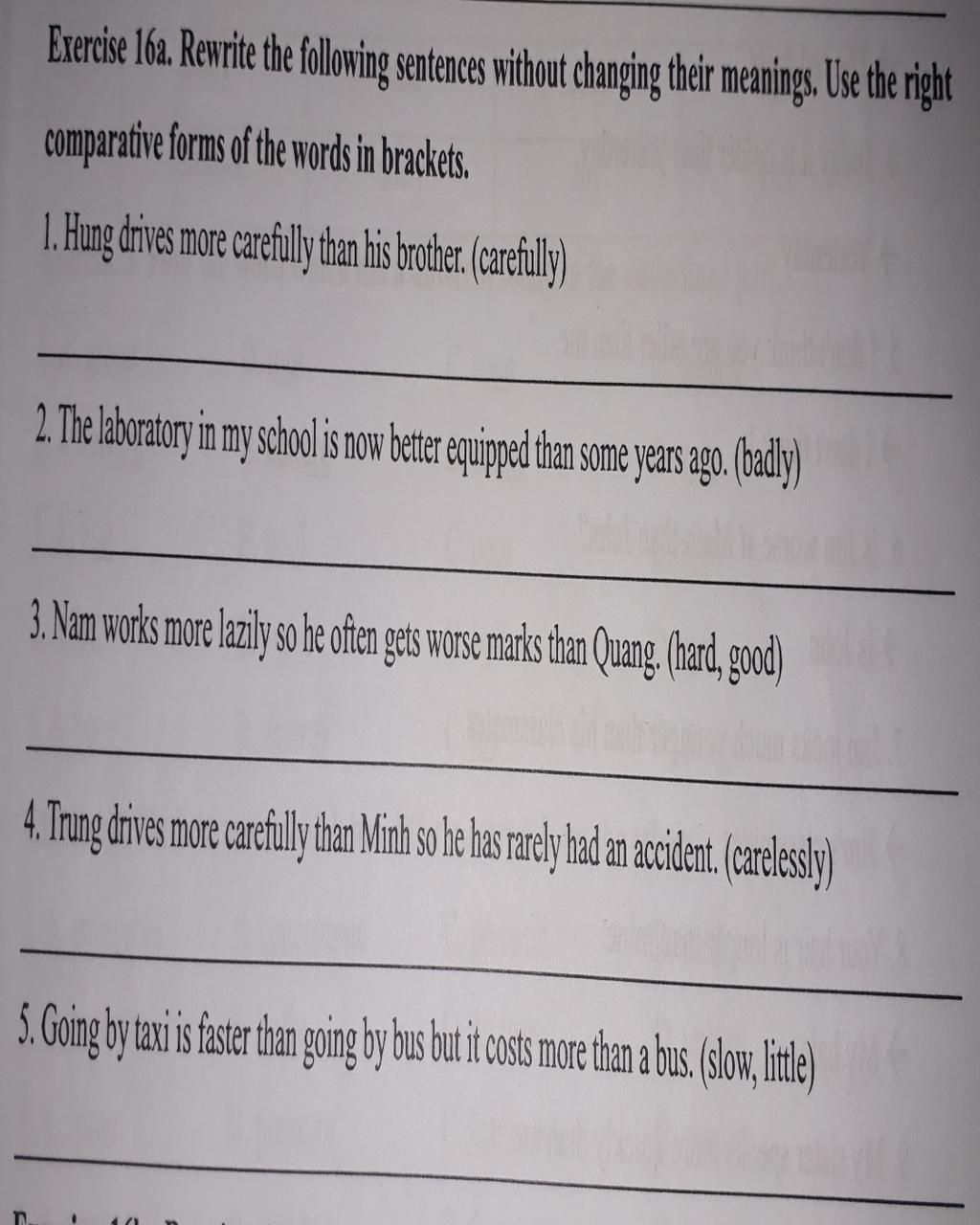`4`.Minh drives more carelessly than Trung so he always had an accident