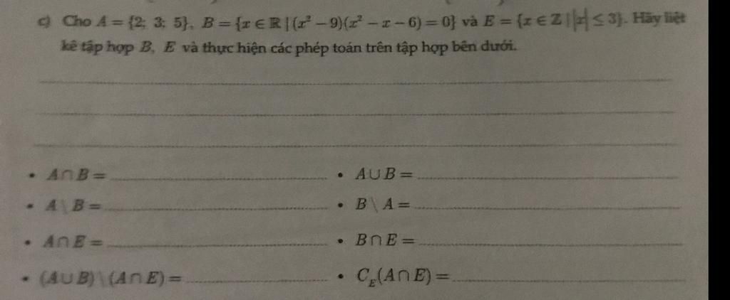 $A \cap E = \big\{x | x \in A \text{ và } x \in E\big\}$