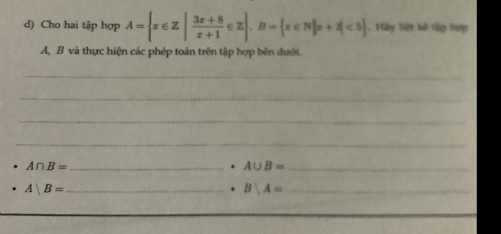 Các tập hợp dưới dạng liệt kê phần :