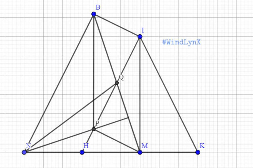 Cho tam giác IHK cân ở I đường cao IM. Trên tia đ ối của HM vẽ N sao cho H là trung điểm của MN. Vẽ MP vuông góc với IH. Gọi Q là trung điểm của IP. Chứng minh rằng: NP vuông góc với QM.