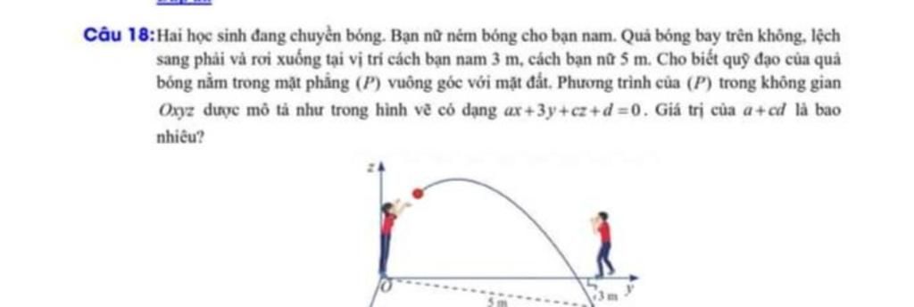 Câu 18:Hai học sinh đang chuyền bóng. Bạn nữ ném bóng cho bạn nam. Quả bóng bay trên không, lệch