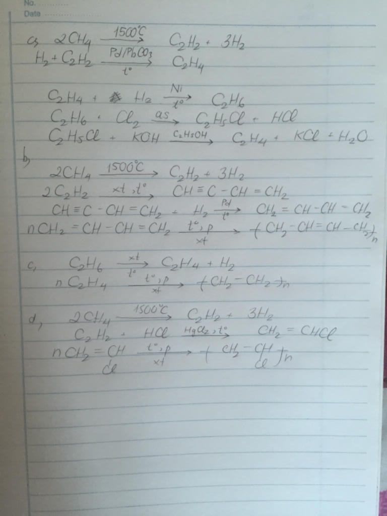 a, ** CH4→C2H2→C2H4→C2H6→ C2H5Cl→C2H4.