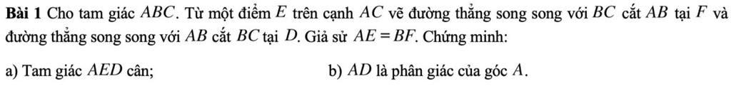 b.Vì $DE//AB, \Delta ADE$ cân tại $E$