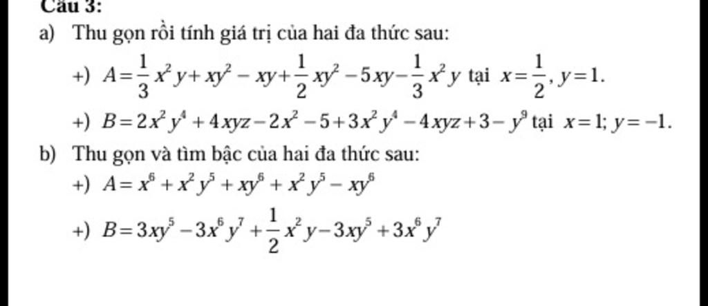 ` a) A = 1/3 x^2 y +xy^2 - xy +1/2 xy^2 -5xy -1/3 x^2y`