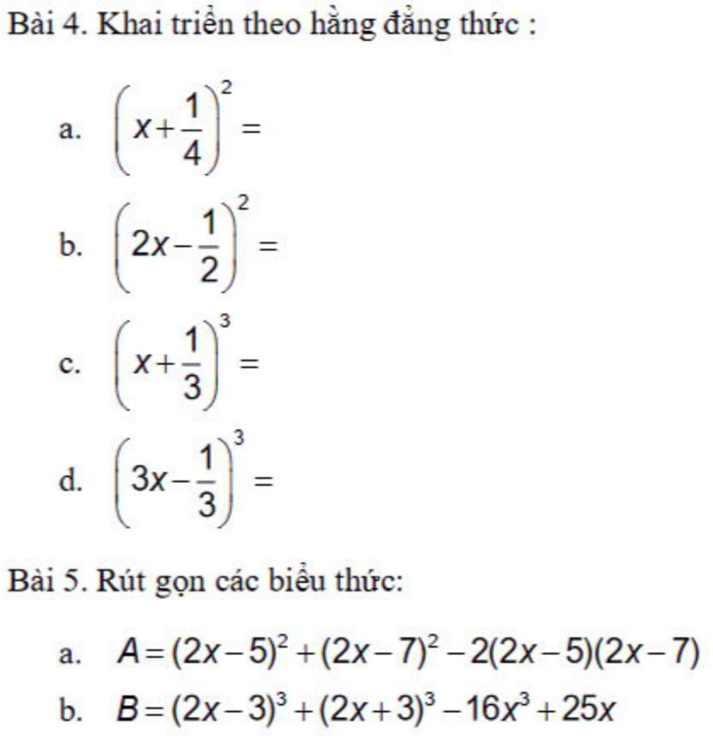 `c) (x+1/3)^3 = x^3 + 3.x^2 . 1/3 + 3.x.(1/3)^2 + (1/3)^3`