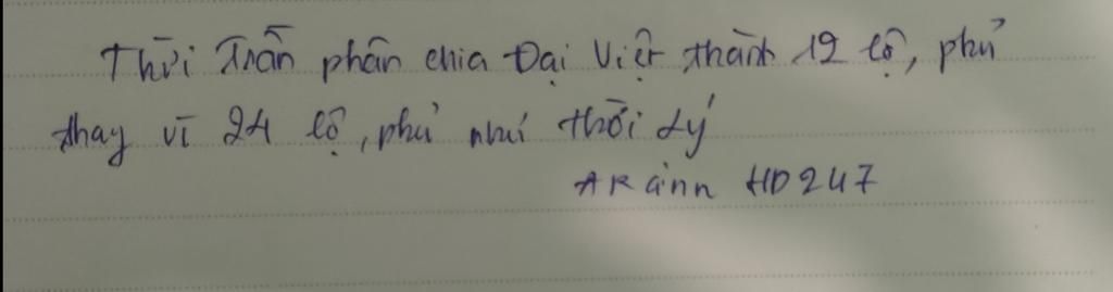`->` Thời nhà Trần, cả nước Đại Việt được chia thành 12 lộ, phủ.