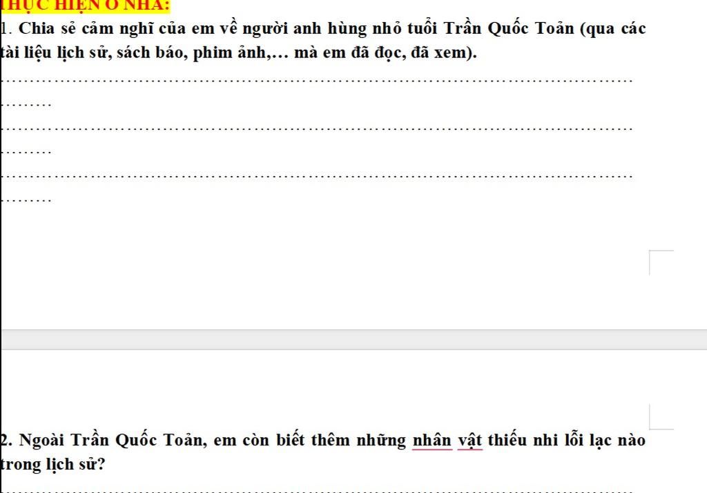 1. Chia sẻ cảm nghĩ của em về người anh hùng nhỏ tuổi Trần Quốc Toản (qua các