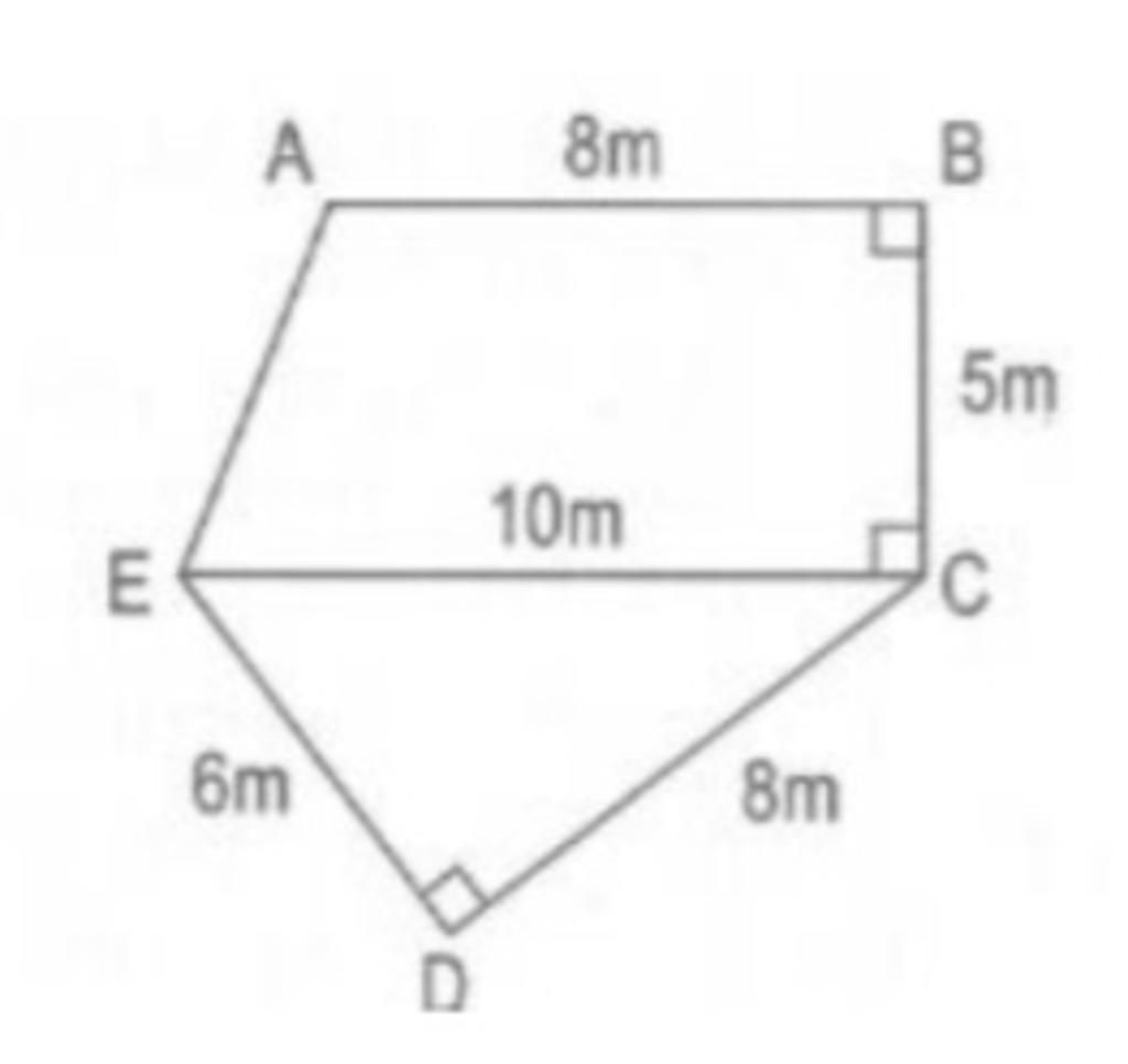 diện tích hình thang vuông ABCE là: S = 1/2.h.(a+b) = 1/2.5.(8+10)=45 ( m2)