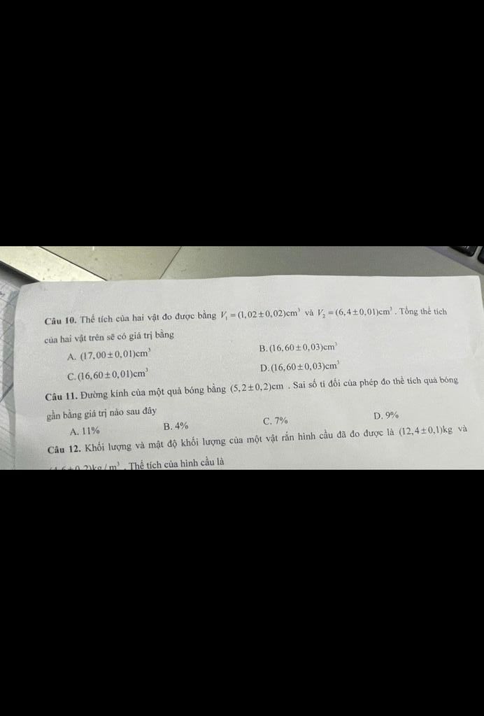 Sai số tuyệt đối trung bình tổng thể tích hai vật: