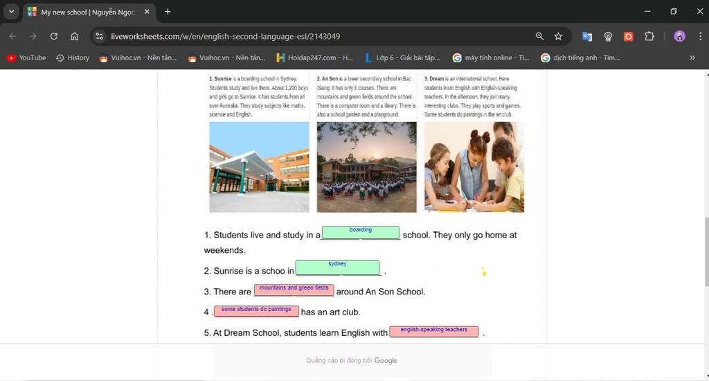 - Dẫn chứng : Some students do painting in the art club → Dream school