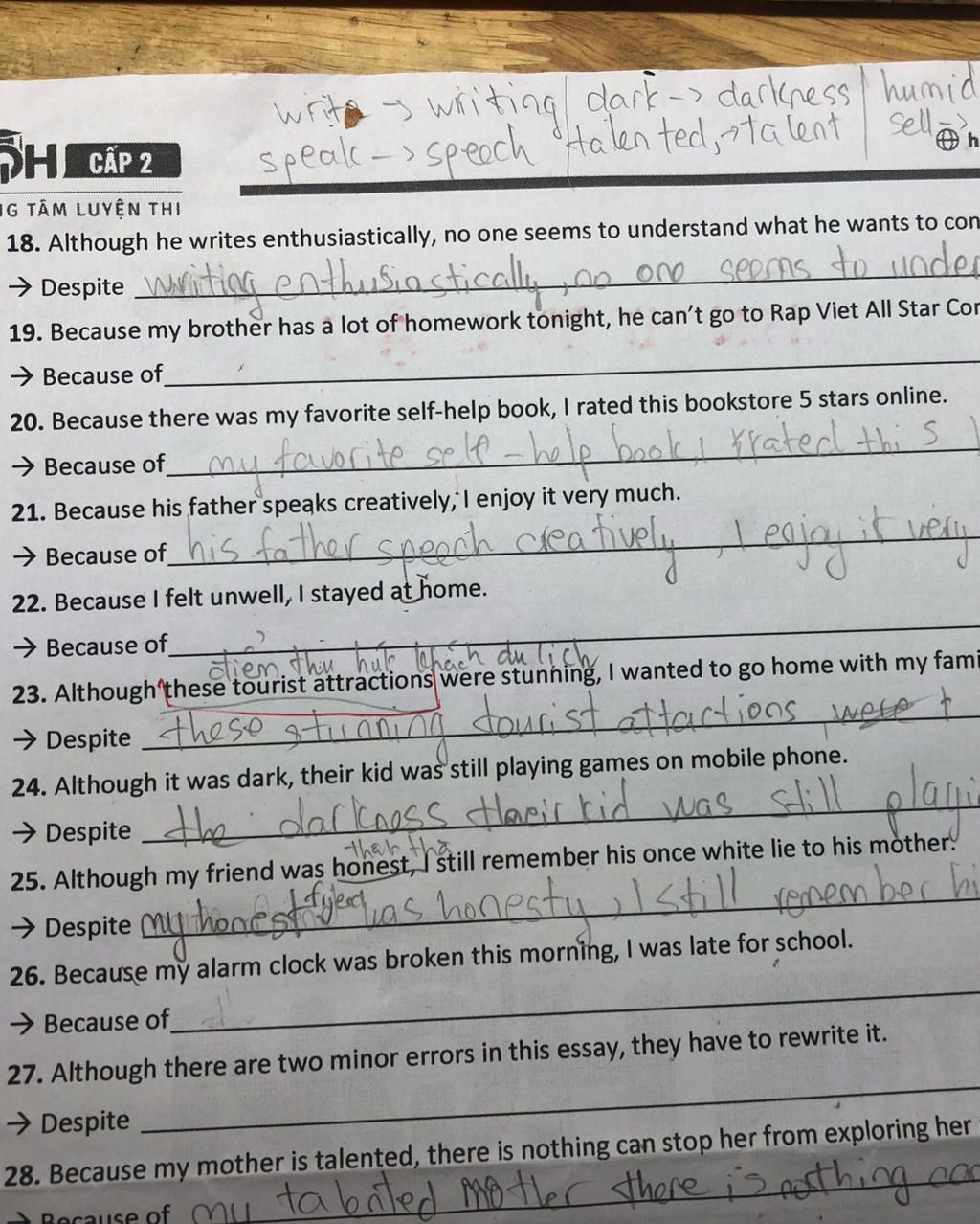 `@` Dịch: Mặc dù có hai lỗi nhỏ trong bài luận này, họ phải viết lại nó