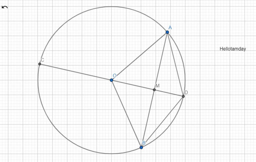 cho đường tròn (O,5cm) vẽ dây AB = 8cm gọi M là trung điểm AB. Qua m vẽ CD là đường kính của (O) ( D thuộc cung nhỏ AB). Tính dây AD của (O)