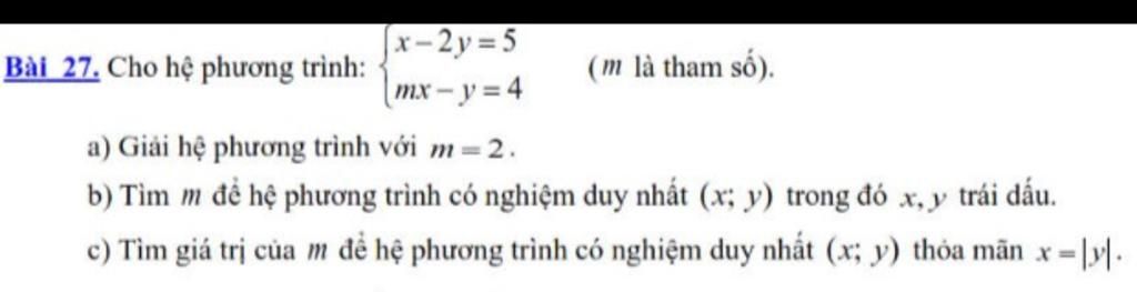 Vậy với `m=2` thì hệ phương trình có nghiệm `(x,y)=(1,-2)`