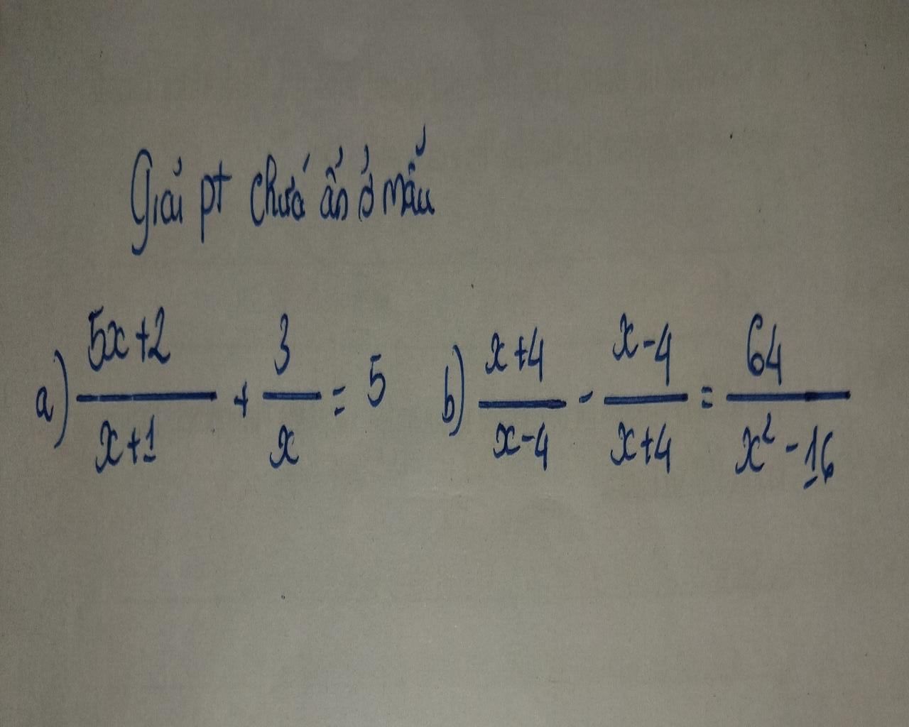 `(5x+2)/(x+1) + 3/x = 5` `(`đk: `x ne -1; x ne 0)`