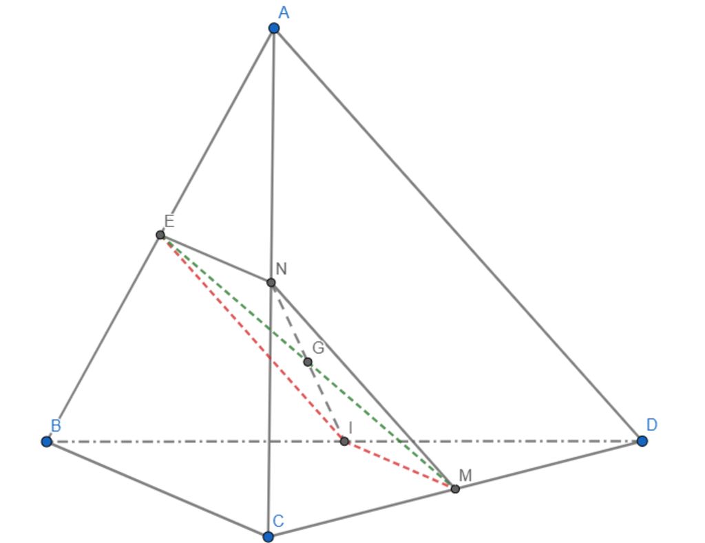 Do `E,N` lần lượt là trung điểm `AB,AC->EN ////BC` và `EN=1/2 BC`