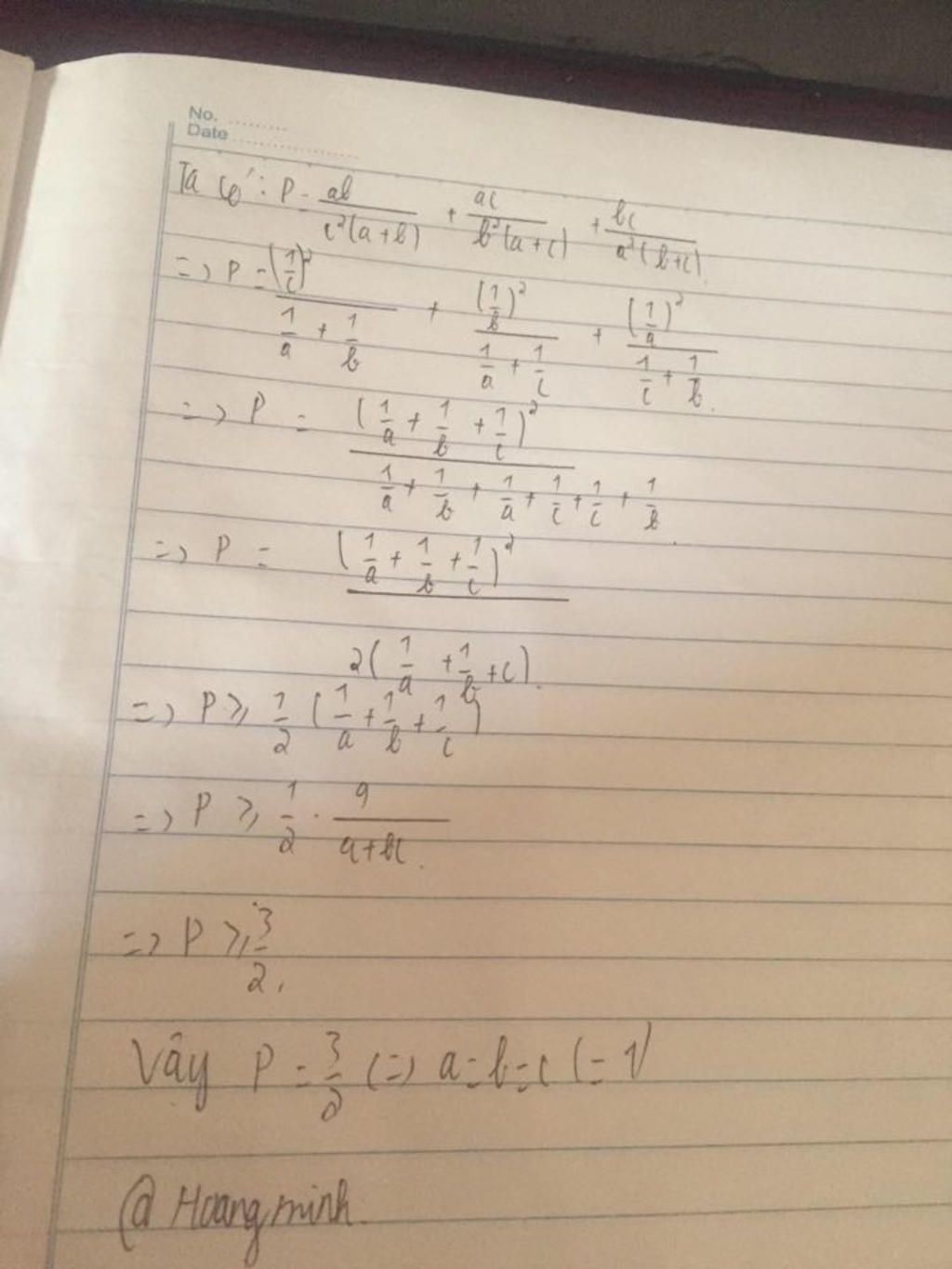 $\to P\ge \dfrac12.\dfrac9{a+b+c}$