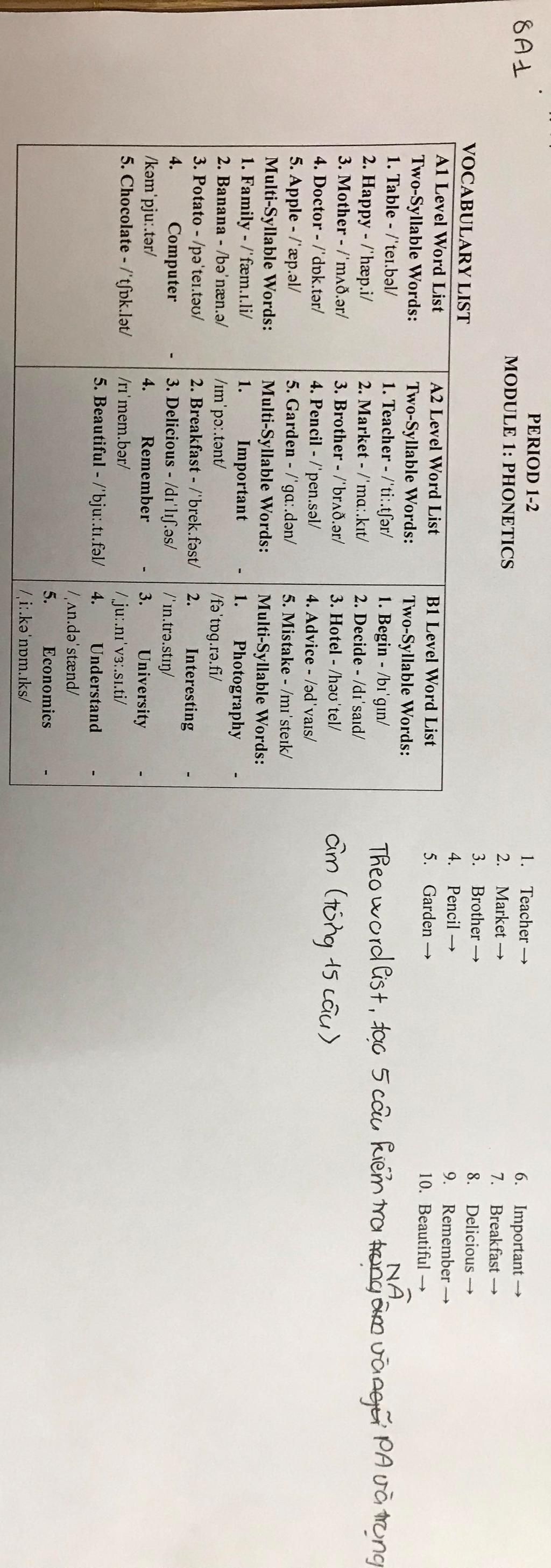A1 Level Word List