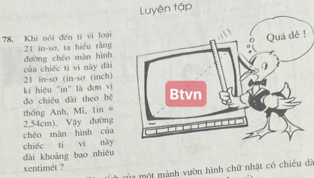 Vậy độ dài của đường chéo màn hình của chiếc ti vi này khoảng `53,34cm`