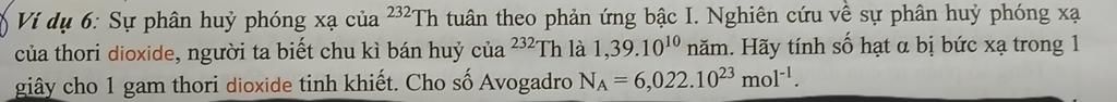`N_{Th} = (1)/(264) . 6,022.10^{23} = 2,281.10^{21}` (nguyên tử)