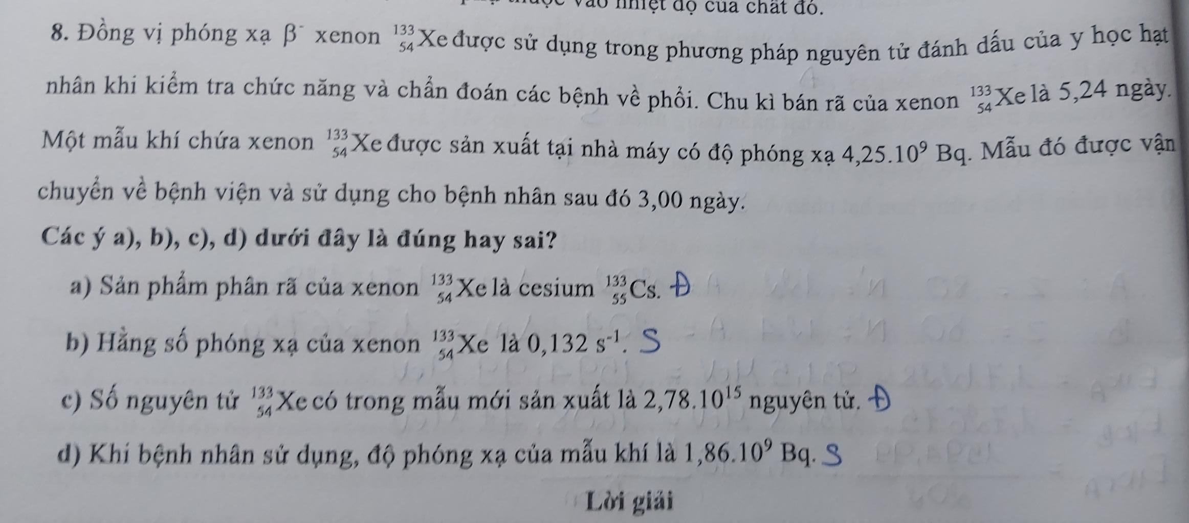 8. Đồng vị phóng xạ Bi xenon 3 Xe được sử dụng trong phương pháp nguyên tử đánh dấu của y học hạt