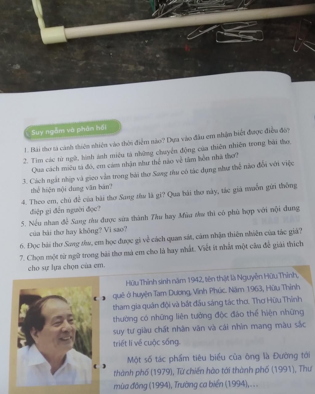 1. Bài thơ tả cảnh thiên nhiên vào thời điểm nào? Dựa vào đâu em nhận biết được điều đó?