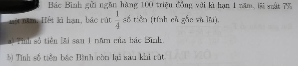 `100 + (100 . 7 : 100) = 107` (triệu đồng)