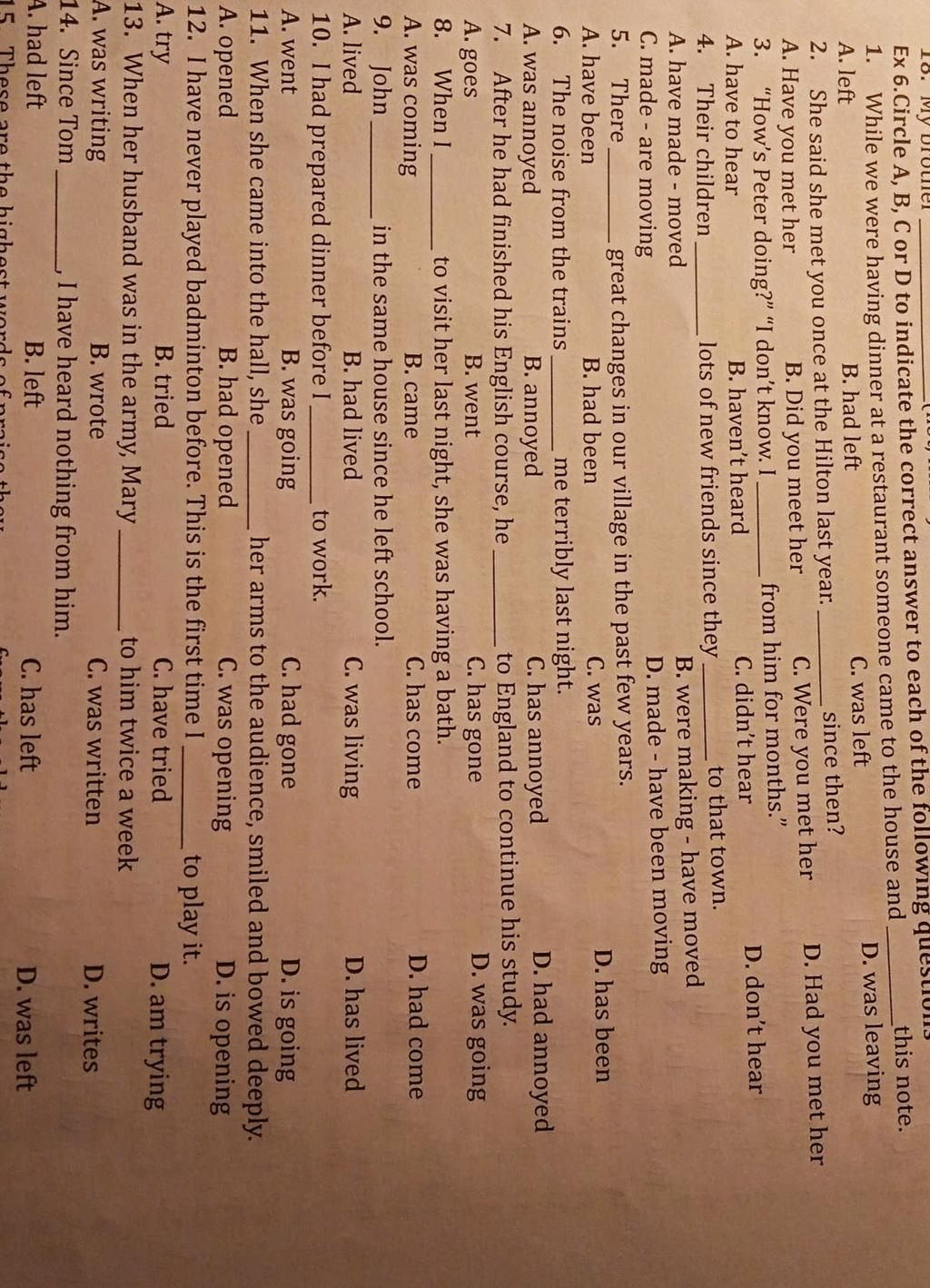 DHNB: before, since + mốc thời gian, for + khoảng thời gian, yet, already, just,....