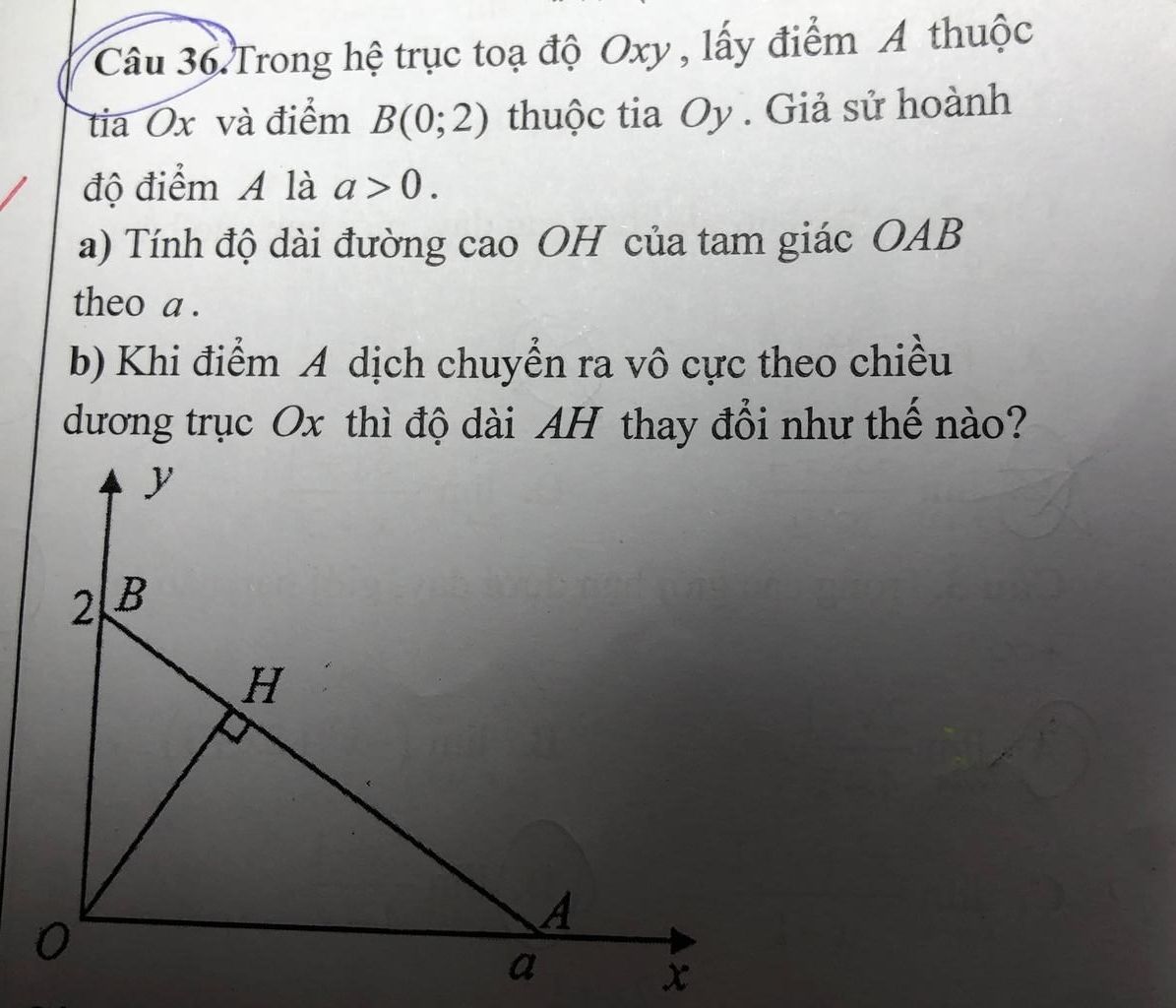 $\to$Khi $A$ dịch chuyển ra vô cực theo chiều dương trục $Ox$ thì độ dài $AH$ kéo dài vô tận