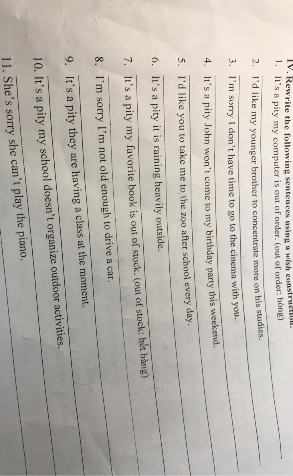 `3` I wish I had time to go to the cinema with you.