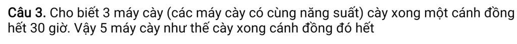 Vậy `5` máy cày như thế cày xong cánh đồng hết `18` giờ `.`