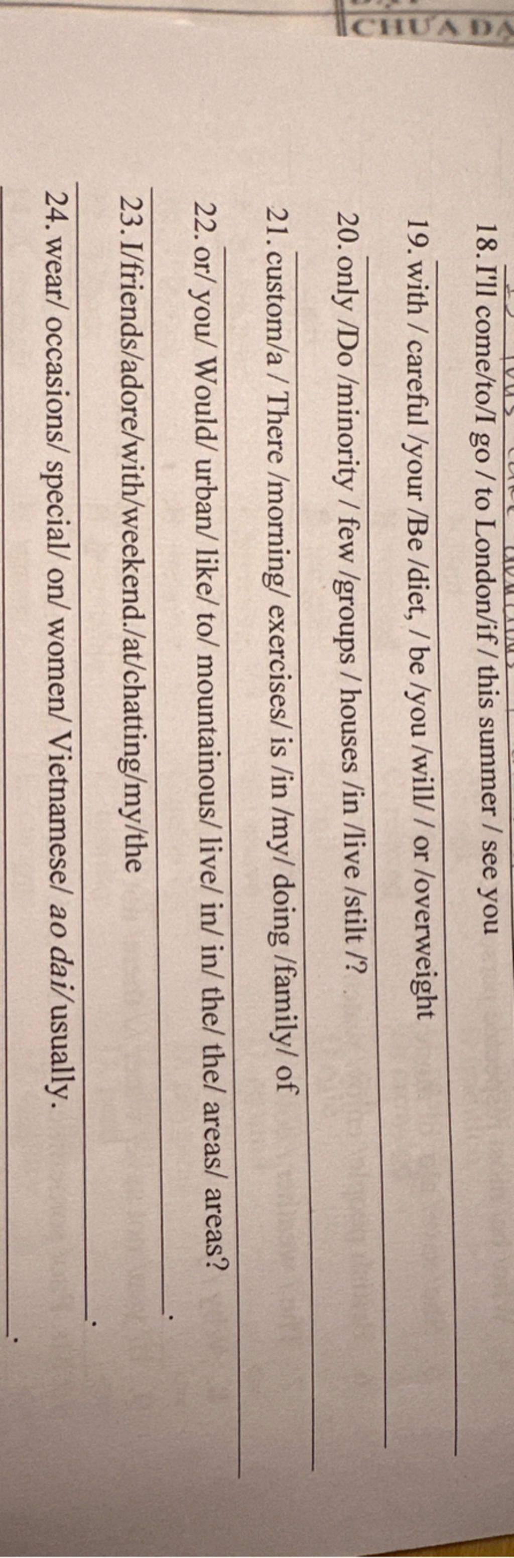 `24.` Vietnamese women usually wear ao dai on special occasions.