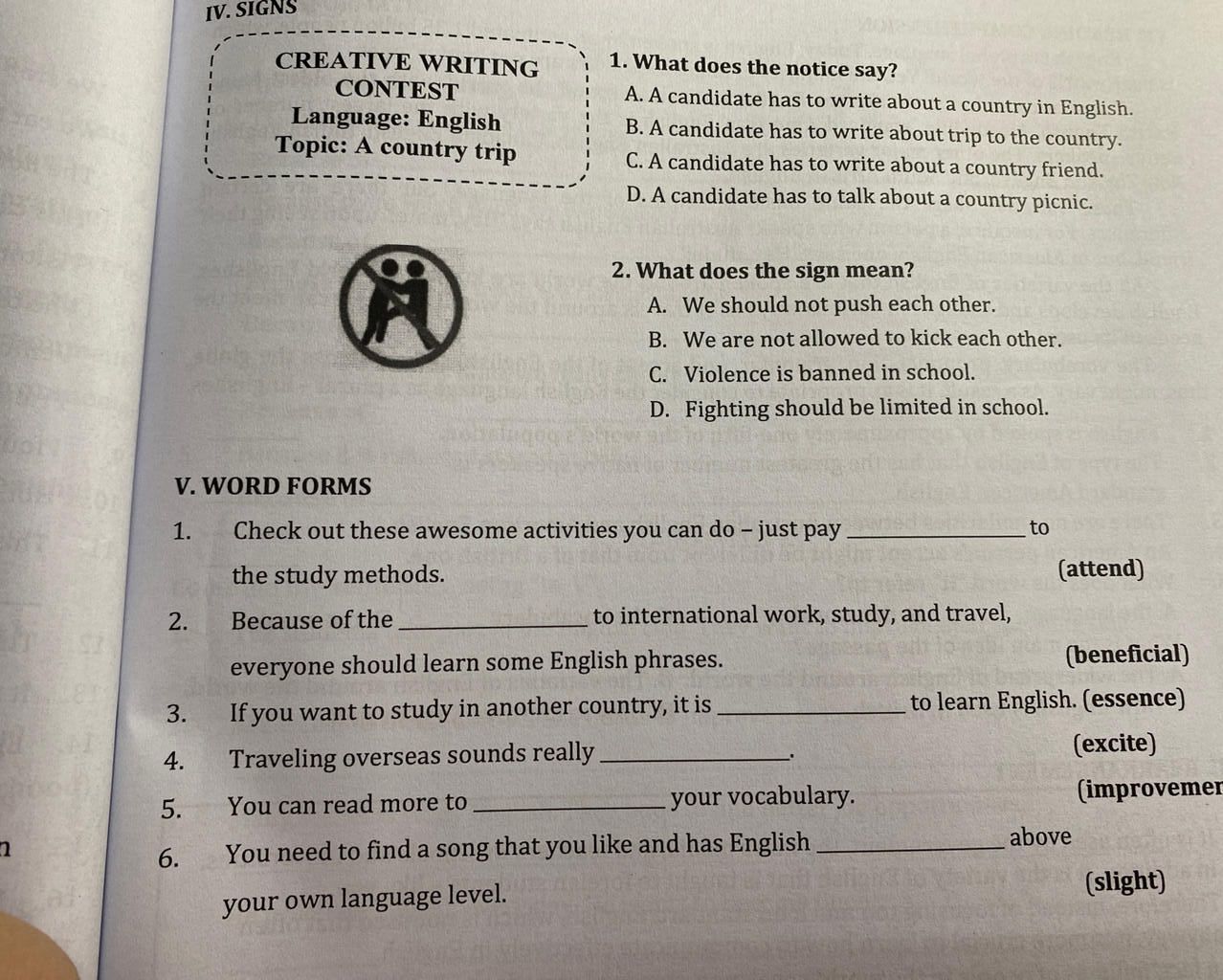 `>` Dựa vào thông tin "Topic: A country trip" và "Language: English"