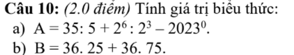 `a)A=35:5+2^6 :2^3 -2023^0`