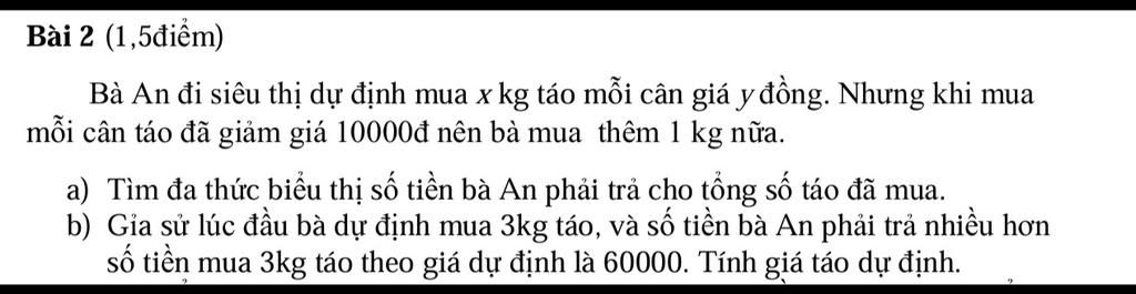 a) Số tiền bà An dự định trả cho x kg táo là: x * y