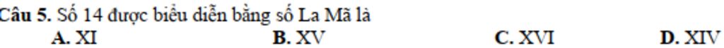 Vậy: `14` được biểu diễn bằng số La Mã là: `XIV`.