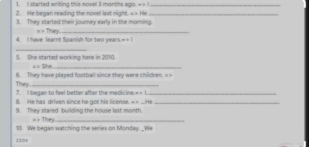 `-` $\text{S + started / began + V-ing / to V + time + ago / in + mốc thời gian / when + clause}$