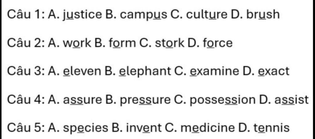 `\rightarrow` Được phát âm là /ə/, còn lại là /ʌ/