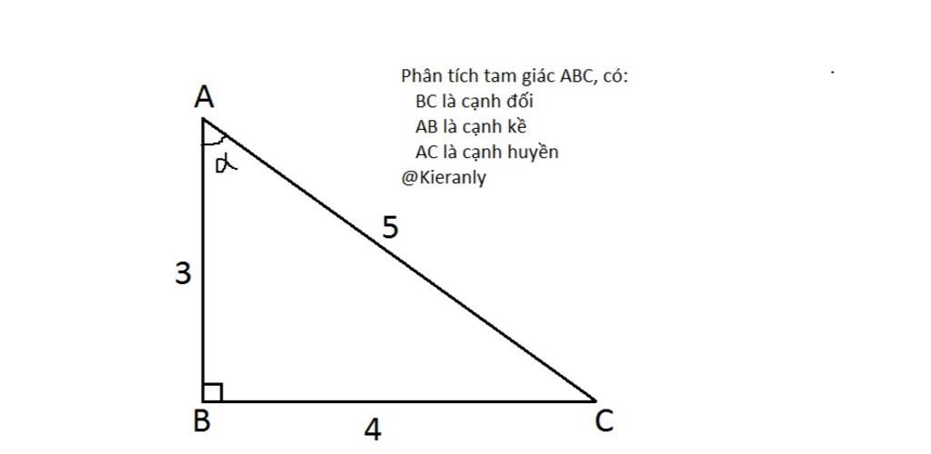 Xét $\triangle$ `ABC`, có `\hat{B} = 90^o`, `\hat{A} =` $\alpha$