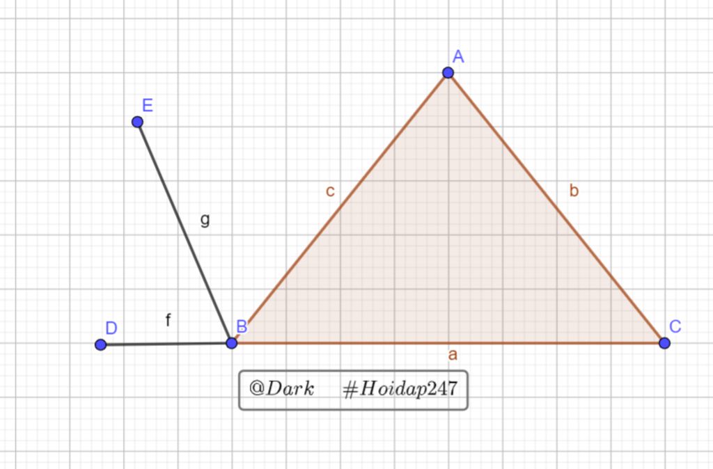 góc ngoài tại `B = 60^o + 60^o = 120^o`