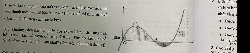 $\to (\dfrac{5-\sqrt7}3, 0.527)$ là đỉnh đồi, $\dfrac{5+\sqrt7}3, -h)$ là đáy hồ, $(h>0)$