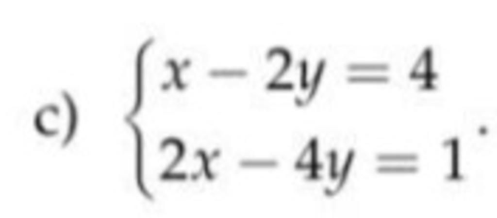 `{(x - 2y = 4),(2x - 4y = 1):}`