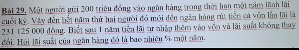 $\to$Lãi suất ngân hàng là $7.5\%$ một năm