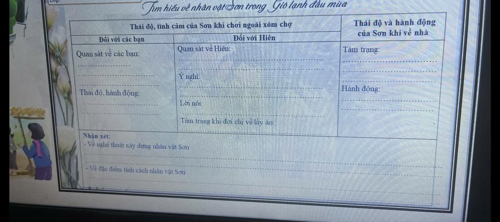 + Quan sát về Hiên: Hiên mặc dù nhà nghèo, không có đủ áo ấm để mặc trong mùa đông nhưng vẫn được cái nhìn sẻ chia, yêu thương, giúp đỡ đến từ Sơn và chị Lan.