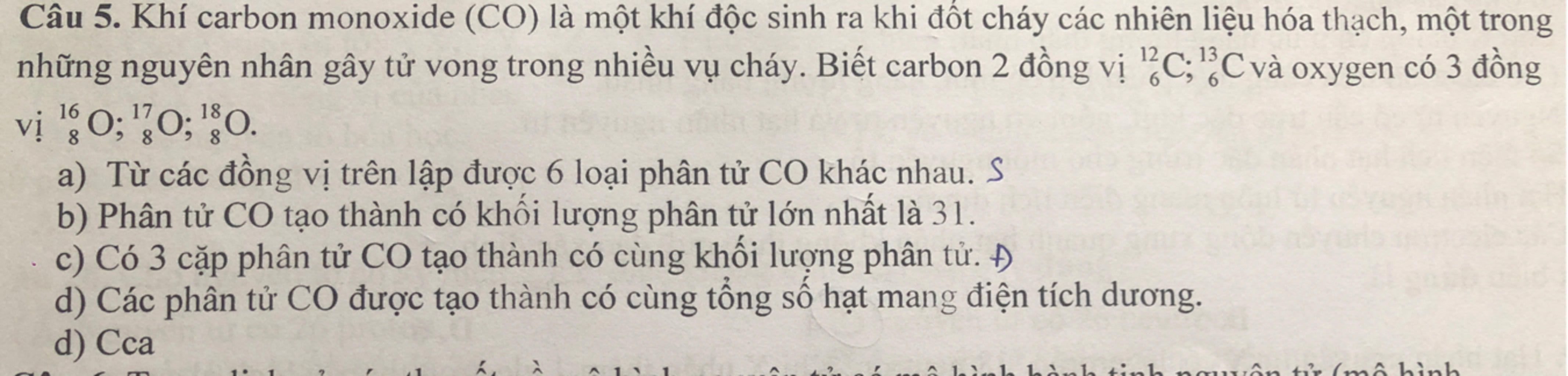 `c,` đó là cặp $^{12}_{6}C^{17}_{8}O , ^{13}_{6}C^{16}_{8}O\, ;\, ^{12}_{6}C^{18}_{8}O, ^{13}_{6}C^{17}_{8}O$ `->` hai cặp thỏa mãn