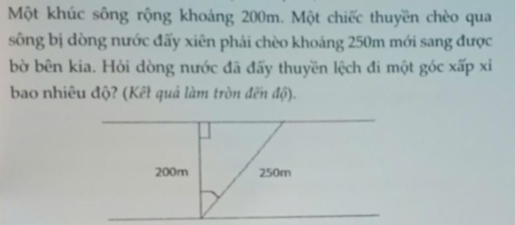 $\to$Dòng nước đẩy thuyền đi một góc xấp xỉ $37^o$