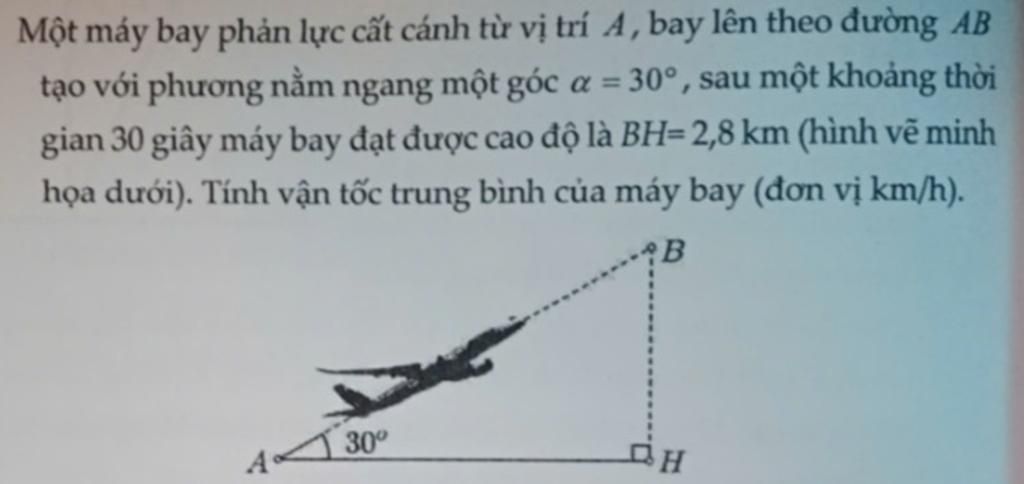 $\sin 30^o=\dfrac{HB}{AB}\to AB=\dfrac{HB}{\sin 30^o}=\dfrac{28}5(km)$
