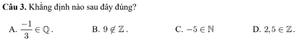 `D. 2,5 in ZZ->` Sai vì `2,5 in QQ` và `2,5 notin ZZ`