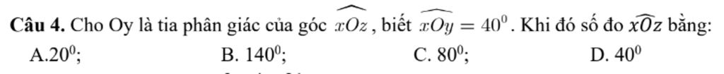 Vì `Oy` là tia phân giác của `hat{xOz}`
